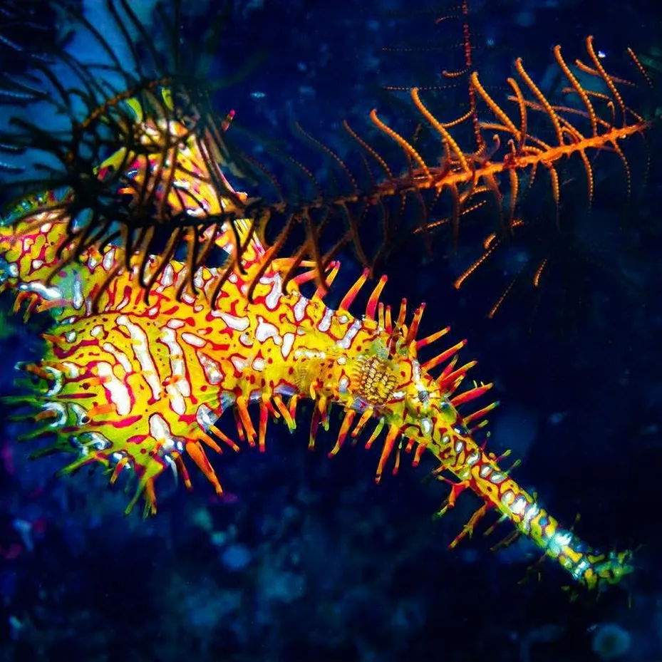 An ornate ghost pipefish hiding in plain sight — one of the things no one tells you about diving: the reef is full of creatures you walked right past. Photo: Gary Tyson / Blue Ribbon Divers